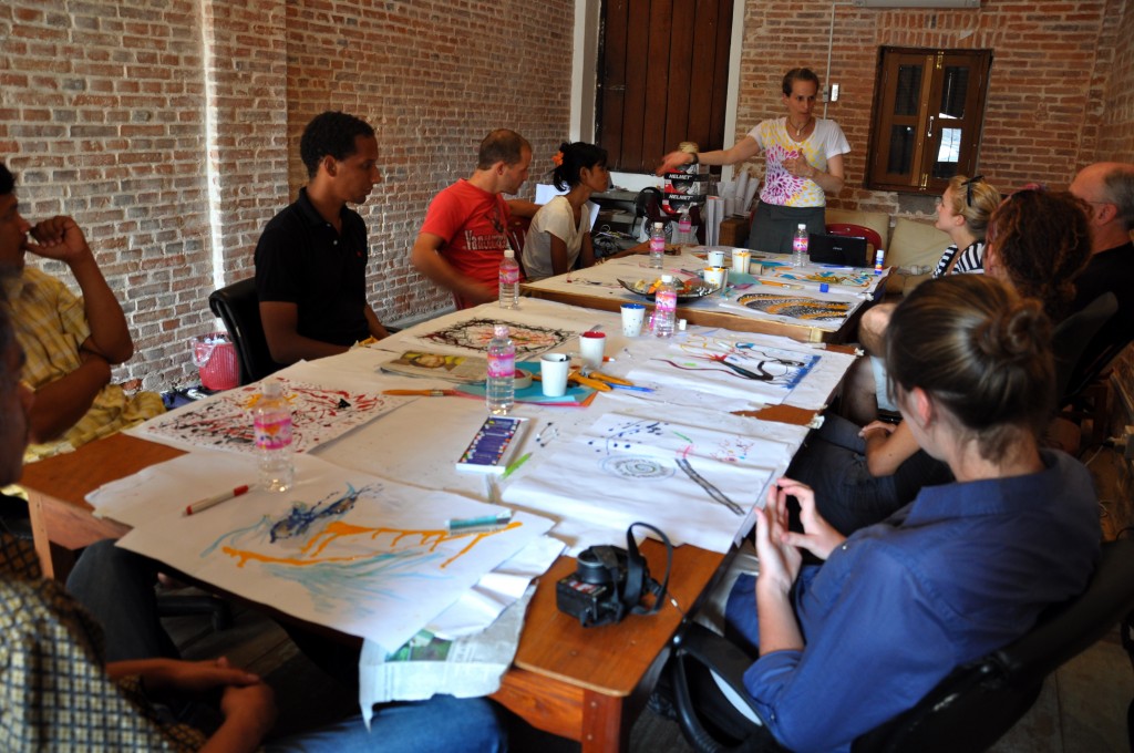 The participants, both Khmer and foreign, hailed from a variety of occupations, some NGO workers, some English teachers, others small business owners who worked in pairs to enhance communication methods using paints, and other tools.